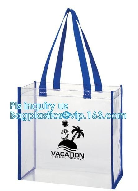 los bolsos claros de la cremallera del pvc del vinilo con las manijas, cosmético claro impermeable del pvc que hace compras manejan la bolsa de plástico con el botón a presión 24