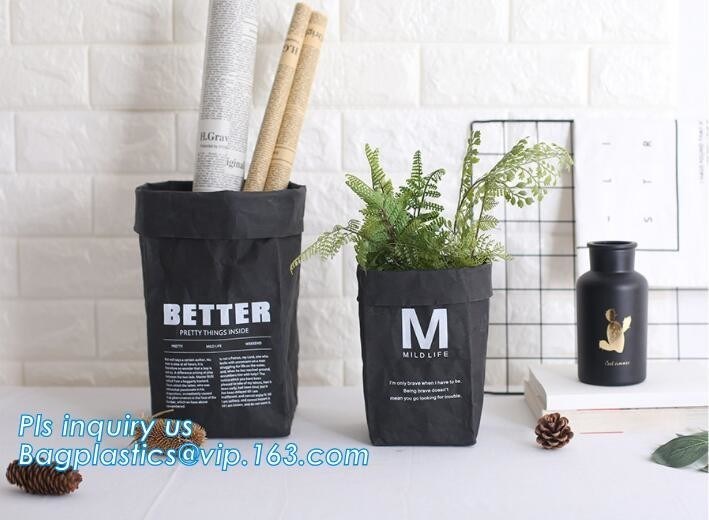 El bolso siente como el cuero y aplana con almacenamiento fácil. Utilizado para la comida, el lavadero, toallas, revistas, libros, como un soporte de la planta y muchos otros. Es lavable, reciclable y muy durable. En conjunto es un diseño humilde con el objetivo de arte de mezcla de papel en vida de cada día. Pueden mezclar fácilmente en cualquier tipo de espacio interior.