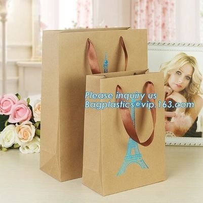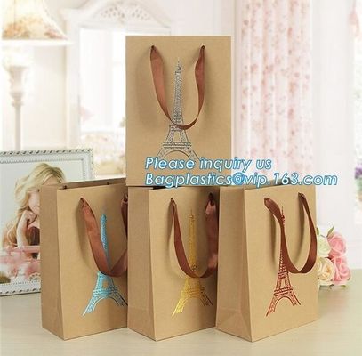Bolsa de papel del regalo de la moda con la manija de la cinta: Bolsa de papel promocional en logotipo de lujo del papel y de la hoja Casarse la bolsa de papel con la manija de la cinta: bolso de papel del vino