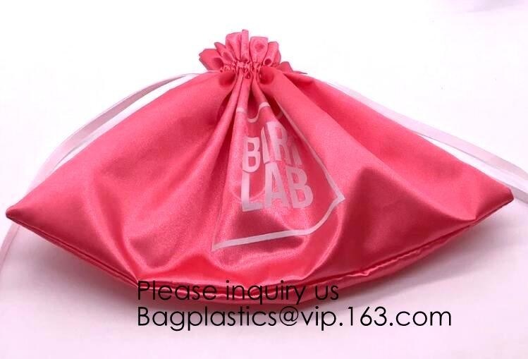 Bolso de empaquetado modificado para requisitos particulares del calcetín de la ropa interior del satén, bolso colorido del satén para el pelo que empaqueta, rosa verde Rose Gold Satin Drawstring