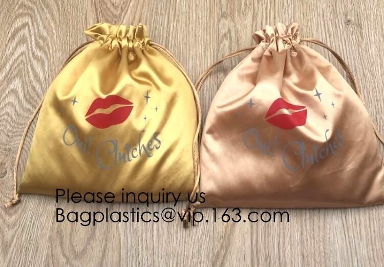 Bolso de lazo de oro del satén del hockey shinny con Rose Gold Printing, bolsa del satén con el volante, pequeño lazo grueso colorido del satén